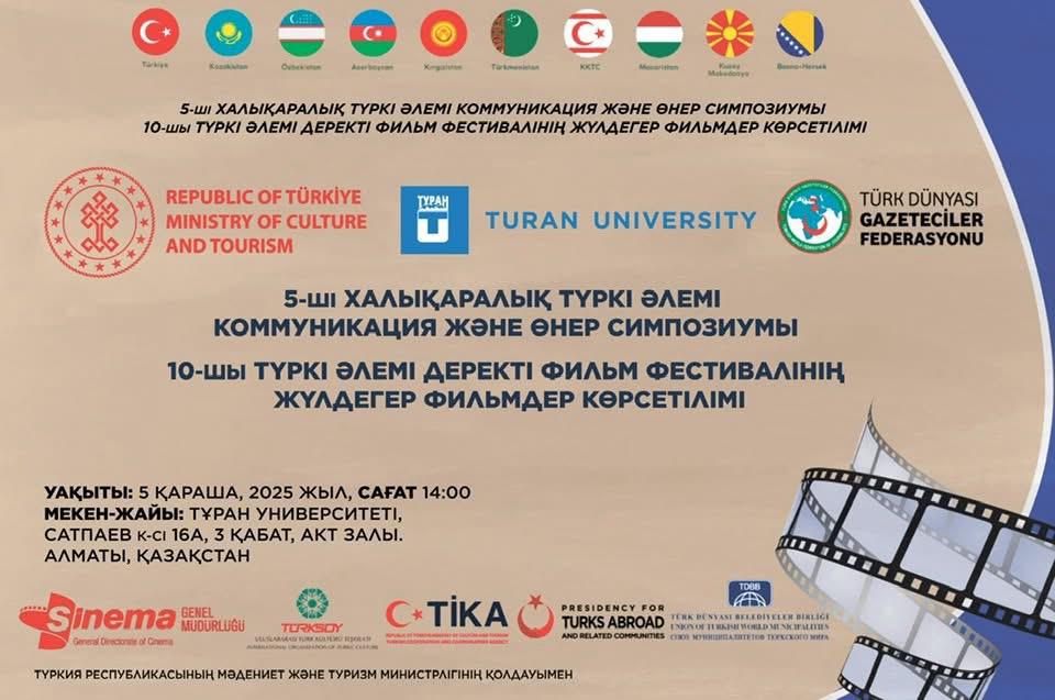 Türkiye Cumhuriyeti Kültür ve Turizm Bakanlığı, Sinema Genel Müdürlüğü, Türk İşbirliği ve Koordinasyon Ajansı Başkanlığı (TİKA), Yurtdışı Türkler ve Akraba Topluluklar Başkanlığı (YTB) ve Uluslararası Türk Kültürü Teşkilatı (TÜRKSOY) tarafından doğrudan desteklenen “V. Uluslararası Türk Dünyası İletişim ve “Sanat Sempozyumu” ve Türk Dünyası 10.Belgesel Film Festivali Ödüllü Film Gösterimi” 05-08 Kasım 2025 tarihleri arasında Kazakistan’ın Almatı ,Kırgızistan Bişkek ,Özbekistan Taşkent şehrinde gerçekleştirilecek.